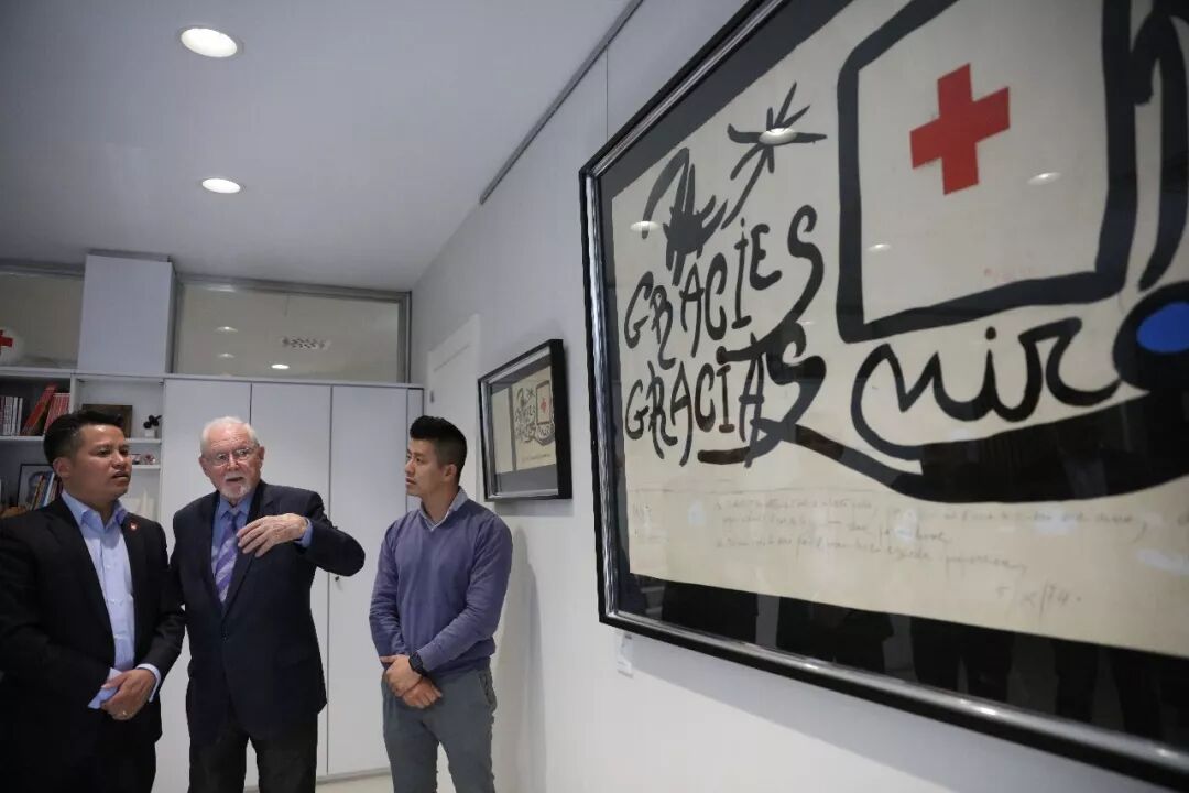 他介绍了红十字会的由来和大致情况,并为代表团讲述了世界著名画家米罗给红十字会赠画背后的故事。