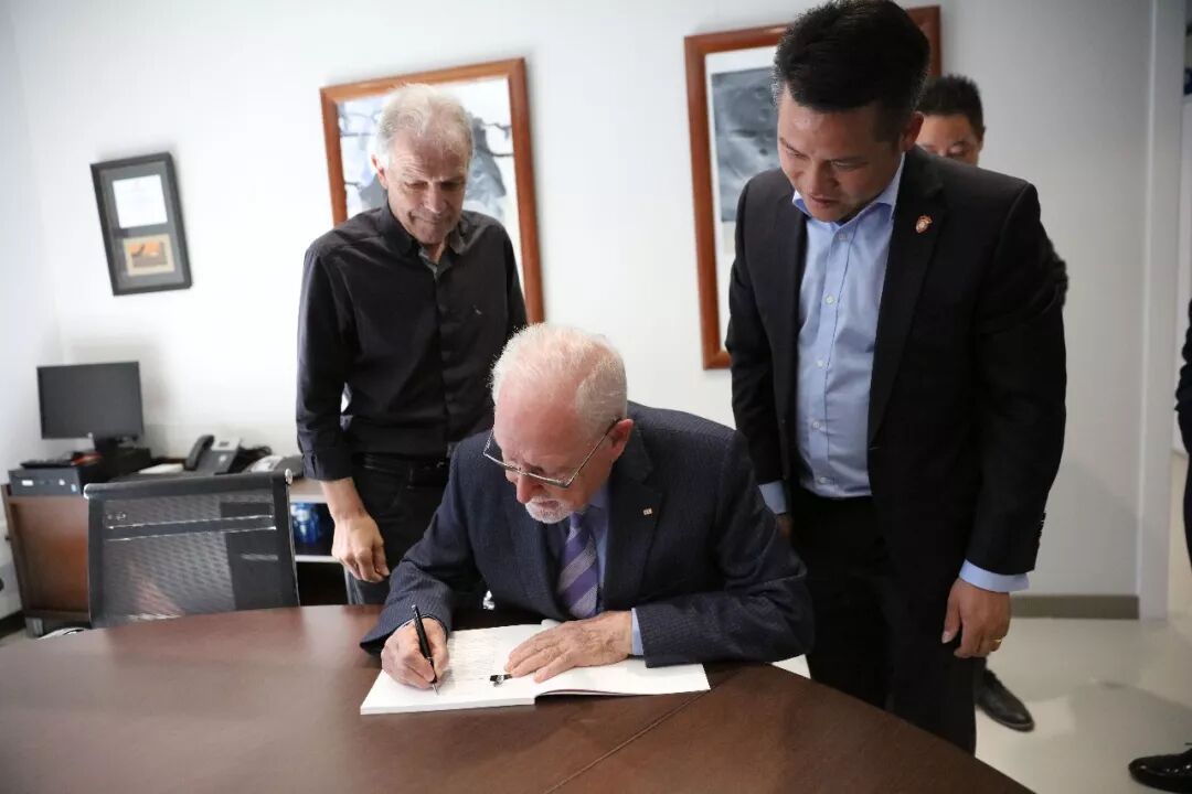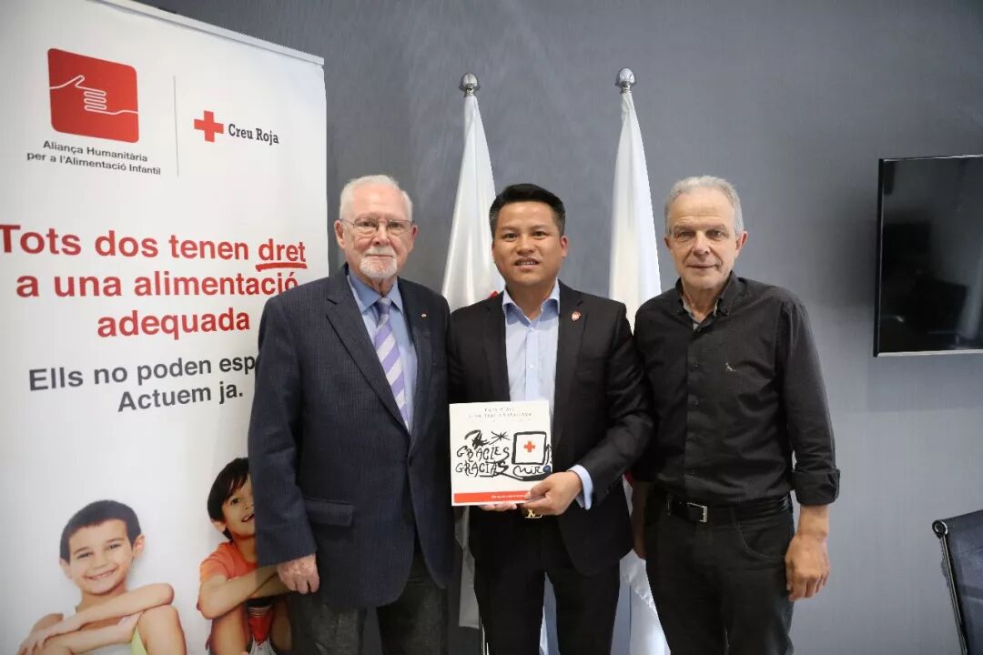 Antoni主席向西班牙侨商会赠送了红十字会加泰罗尼亚总部纪念册,并在纪念册上签字合影留念。