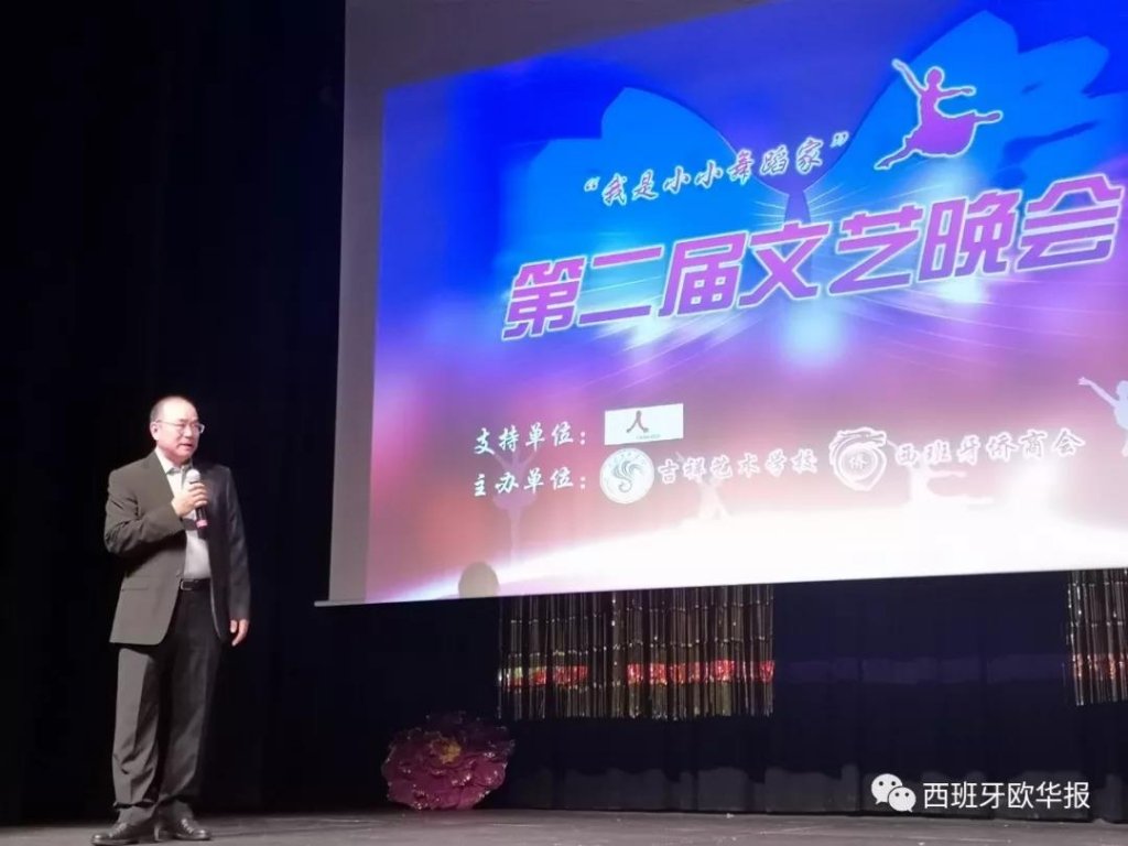 西班牙侨商会金浩会长致辞,少年是祖国的希望,华二代青少年是我们身处海外的华侨华人传承中华文化,保留“民族根,民族魂”的保障。我们希望能为“文化传承”助力,竭尽所能支持所有关于华裔青少年的文体活动。金浩会长表示,孩子们的成长少不了家长们的关注与支持,大家都应该踊跃参与此类活动。最后,他预祝“我是小小舞蹈家”首届文艺晚会圆满成功。
