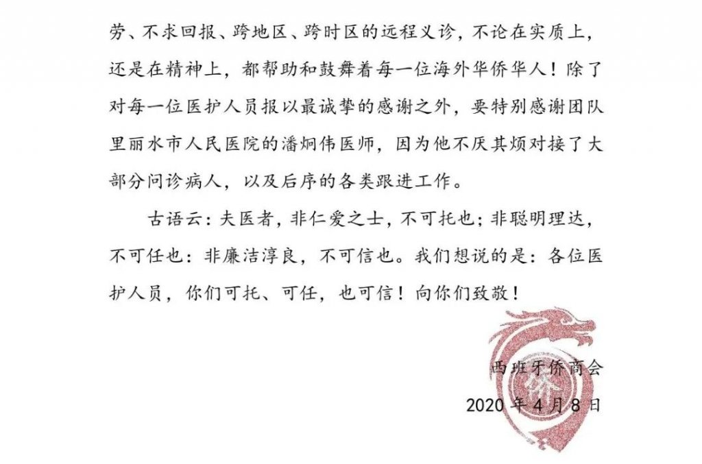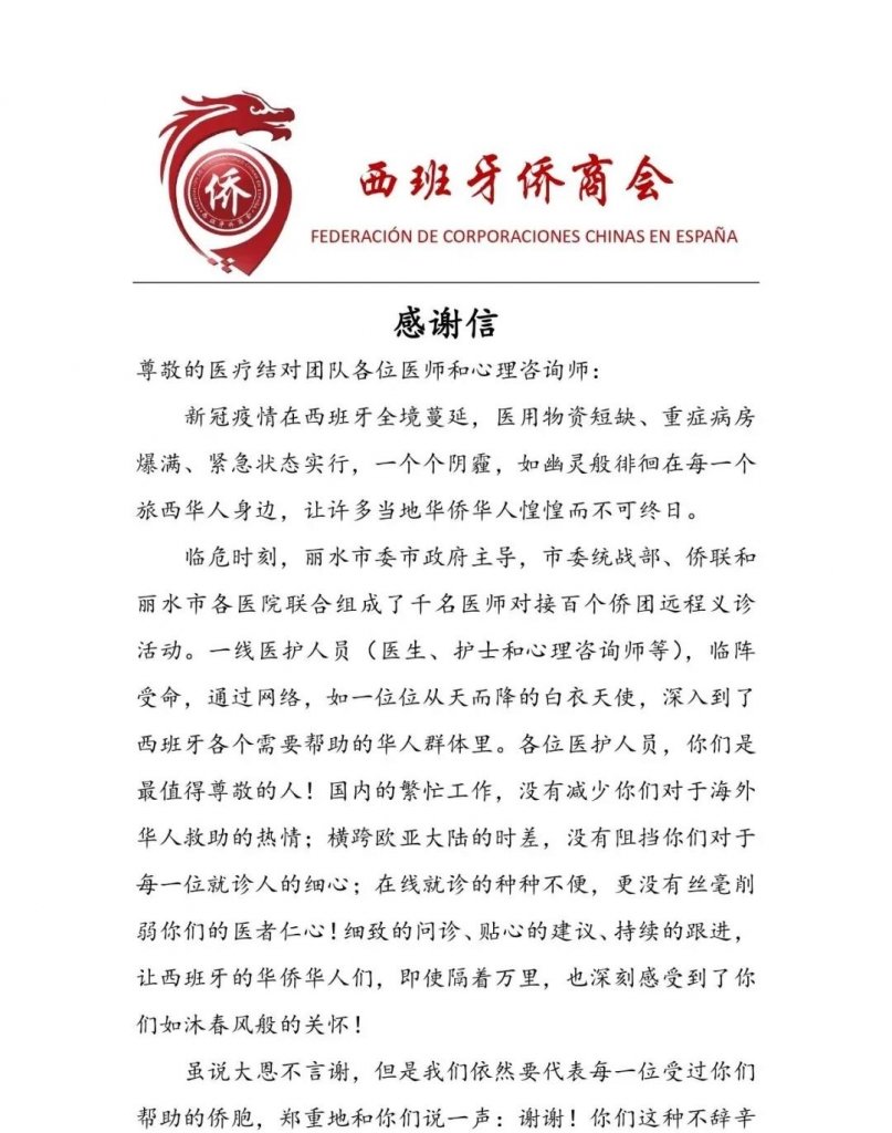 西班牙侨商会向结对医疗团队各位医师和心理咨询师致感谢信 By admin, admin|2020-07-24T12:32:10+02:002020年7月24日|Categories: 图片新闻|0 Comments Share This Story, Choose Your Platform! FacebookXBlueskyRedditLinkedInWhatsAppTelegramTumblrPinterestXingEmail Related Posts 丽水市第一批“双招双引驿站”设立, 总会秘书长和副会长被聘为“双招双引大使” Gallery 丽水市第一批“双招双引驿站”设立, 总会秘书长和副会长被聘为“双招双引大使” 2022年9月14日 | 0 Comments 全球首个“天府云医·海外惠侨远程医疗站(西班牙)”“海外惠侨熊猫书屋(西班牙)”线上启动仪式圆满举办 Gallery 全球首个“天府云医·海外惠侨远程医疗站(西班牙)”“海外惠侨熊猫书屋(西班牙)”线上启动仪式圆满举办 2022年9月13日 | 0 Comments 西班牙侨商总会祝您2021新年快乐!新年新气象,新年新征程! Gallery 西班牙侨商总会祝您2021新年快乐!新年新气象,新年新征程! 2021年1月13日 | 0 Comments 捱过暴风劲雨时,守得云开见月明——回顾2020,展望2021 Gallery 捱过暴风劲雨时,守得云开见月明——回顾2020,展望2021 2021年1月13日 | 0 Comments 不忘初心战疫情 坚定信心迎春晖——林楠总领事致领区中国同胞的新年贺词 Gallery 不忘初心战疫情 坚定信心迎春晖——林楠总领事致领区中国同胞的新年贺词 2021年1月13日 | 0 Comments Leave A Comment 取消回复Comment Save my name, email, and website in this browser for the next time I comment. Δ